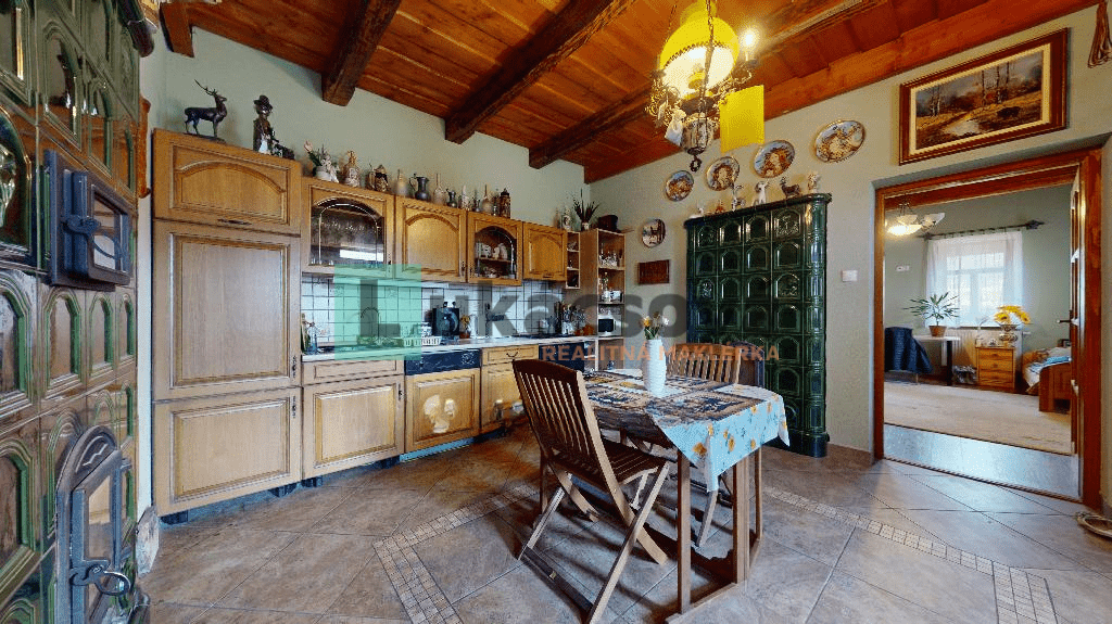 Kúrenie: ústredné kúrenie na tuhé palivo, s plynom + kachľové peci